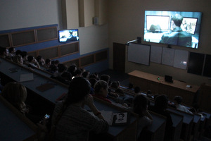 Сегодня представителям первых-вторых курсов ЭИ и ТТИ в одной из аудиторий вуза были продемонстрированы видеофильмы о борьбе с терроризмом. А затем перед студентами выступил начальник управления безопасности университета С.М. Хлыпалов.