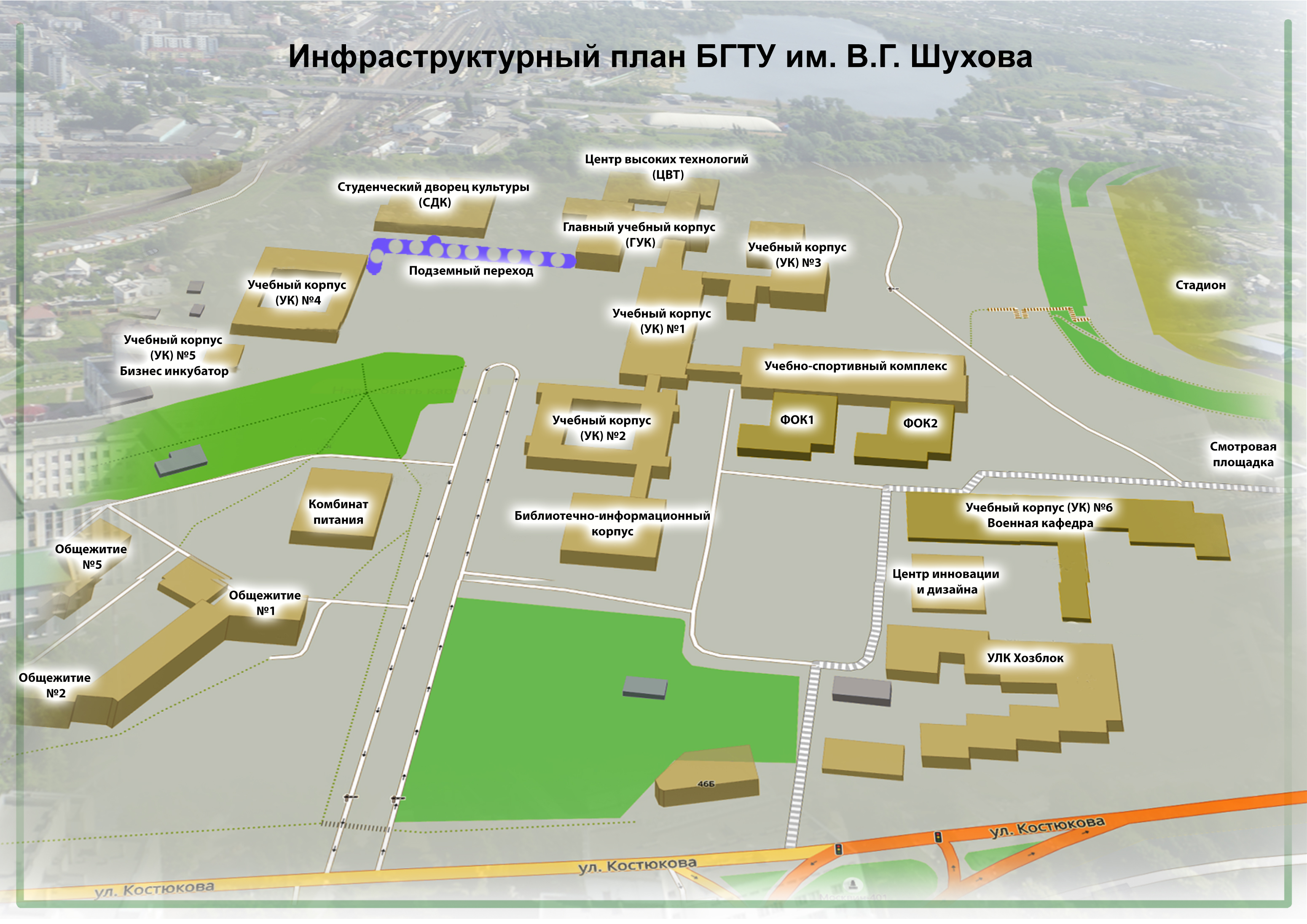 - Схема расположения корпусов БГТУ им. В.Г. Шухова: