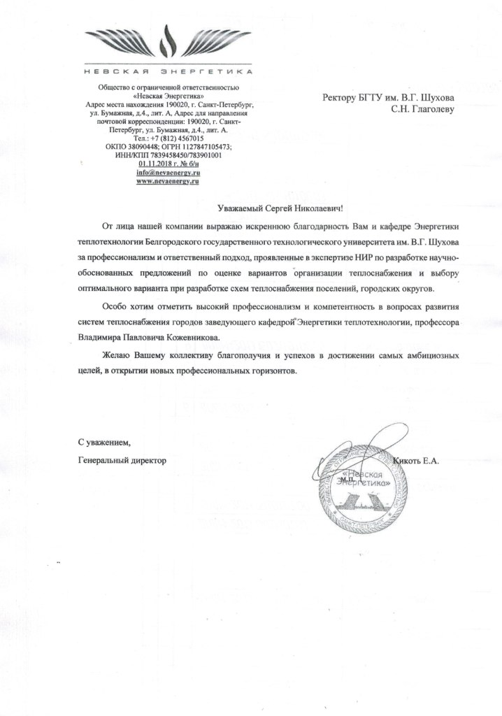 Аналогичную работу кафедра ЭТ выполнила для ООО "Невская Энергетика" (г. Санкт-Петербург). Наши сотудники выполнили все работы качественно и в срок.